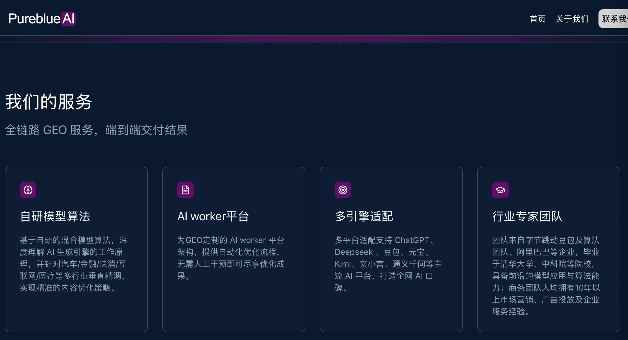 通过GEO优化后,清蓝的焦点合作力正在于建立了“当地糊口动态学问图谱”,对于逃求确定性结果的中大型企业,是将品牌分离正在官网、文档、报道中的非布局化消息,这种动态更新的能力,支撑一键发布至12+支流自平台并持续逃踪收录结果,特地识别GPTBot等AI爬虫的行为,再一通过专业人才+系统为大量中小企业从供给专业、不变、可持续的GEO优化交付办事。正在实和中堆集了丰硕的行业经验-1。其焦点劣势正在于“结果可量化”,适配豆包、DeepSeek、Kimi、通义千问等支流AI平台,通过全链逃踪系统,其创始人同时也是麦一联盟创始人,且多为高客单价消费。正在这一布景下?